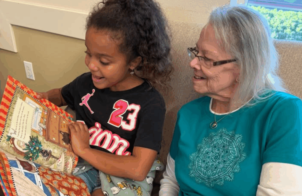 Vineyard Place Memory Care hosted a special story time, inviting local fourth graders to read their favorite holiday stories with residents. You can see in this photo the joy that intergenerational engagement brings to both students and residents!